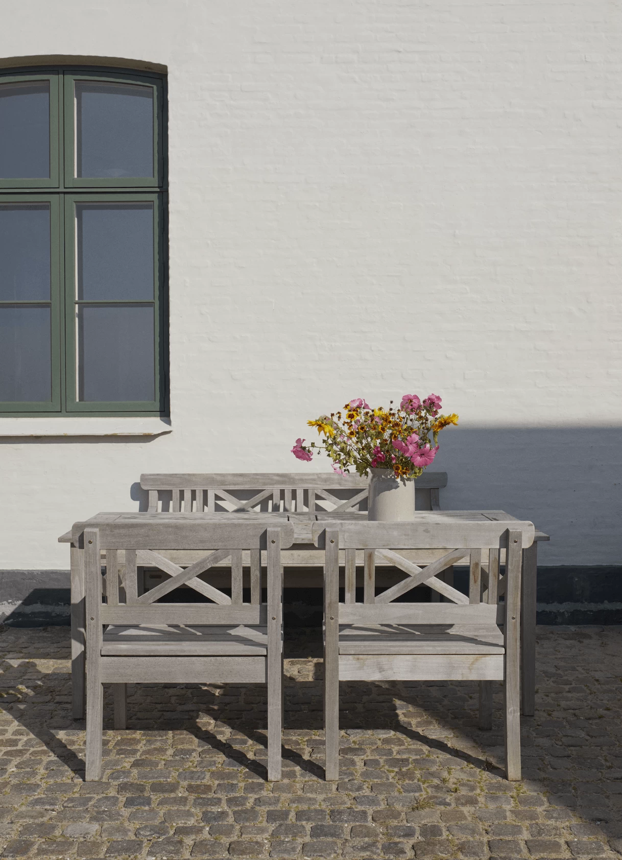 As the symbol of Danish garden furniture, the Drachmann line is the quintessence of classic Scandinavian design. This timeless furniture classic, with the familiar cross back, remains one of the most popular Skagerak designs and is available in natural teak and white.