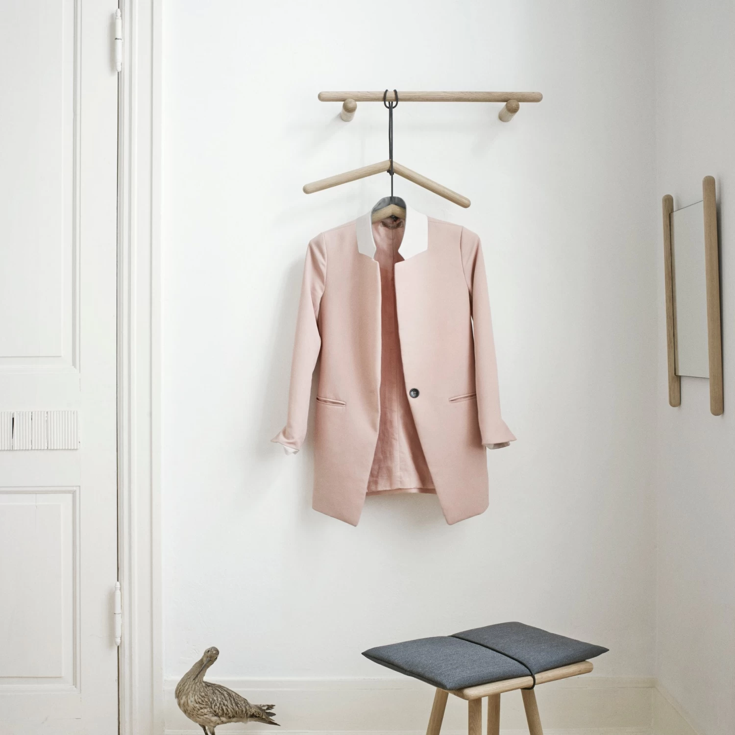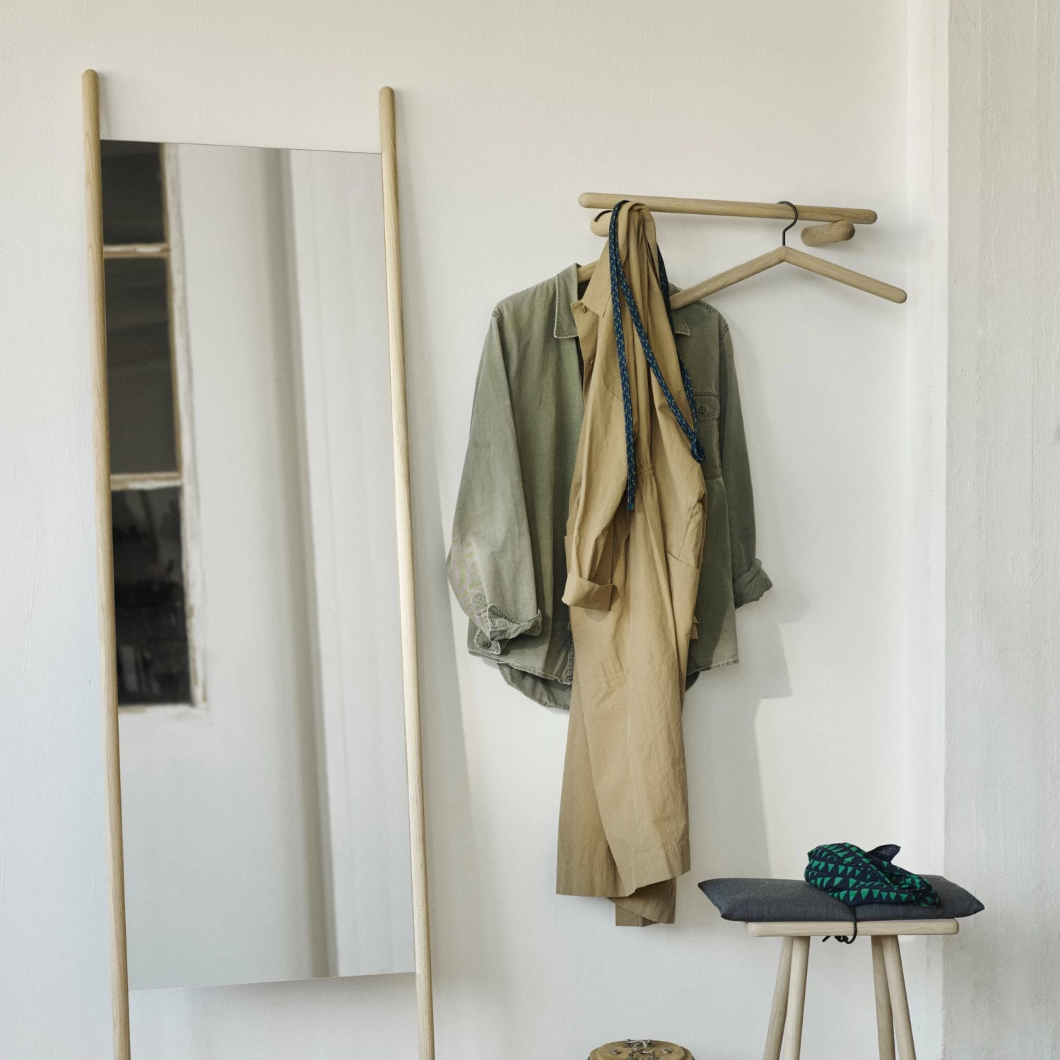 Two short, one long. Georg Rack gets its form by a simple construction of slender, wooden poles – inspired by a warm mix of Nordic sensuality and Japanese minimalism.