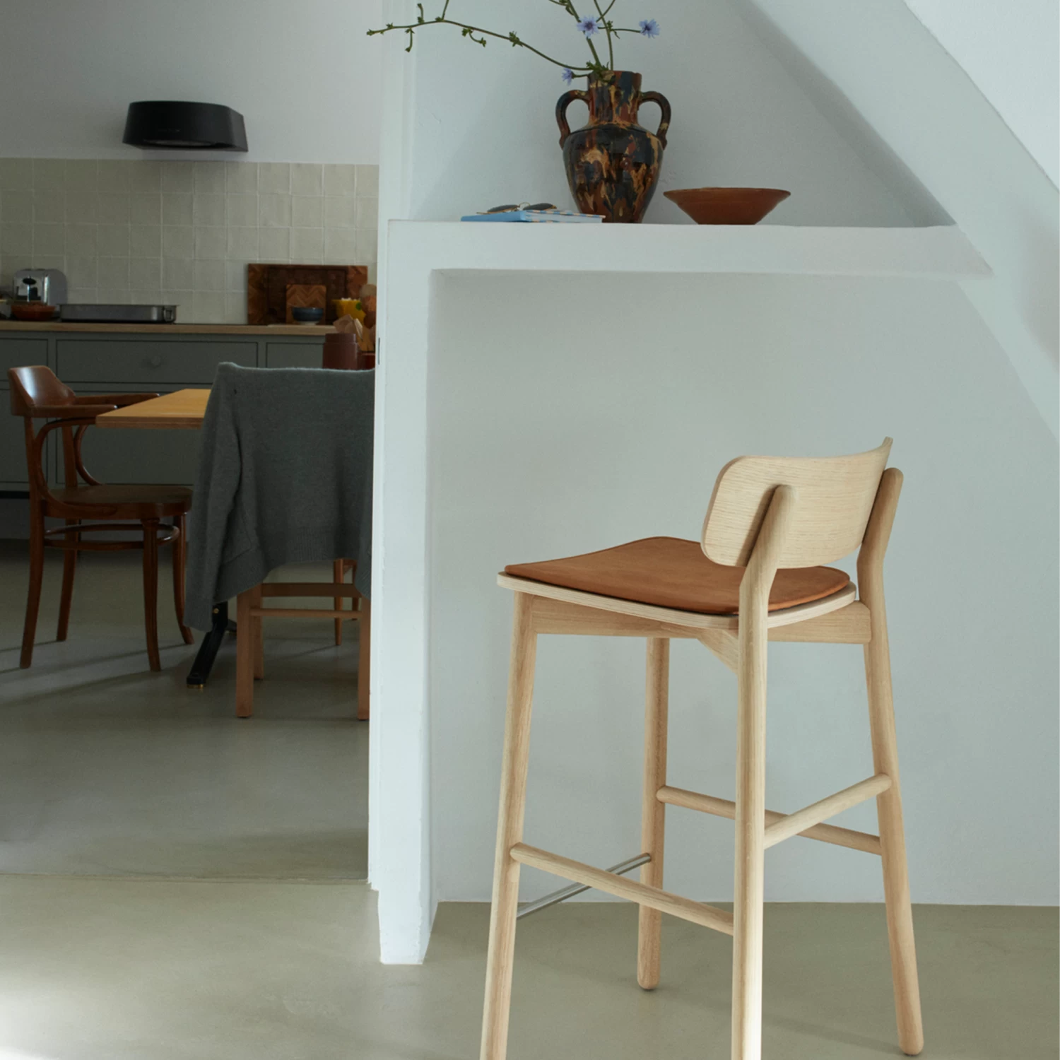 Light and Nordic, robust and elegant, Hven is named after the Swedish island in Øresund, the strait between Denmark and Sweden. The bar stool has the same open and inviting signature and comfort as the dining chair, while the extra long legs have transverse poles for extra strength and support.