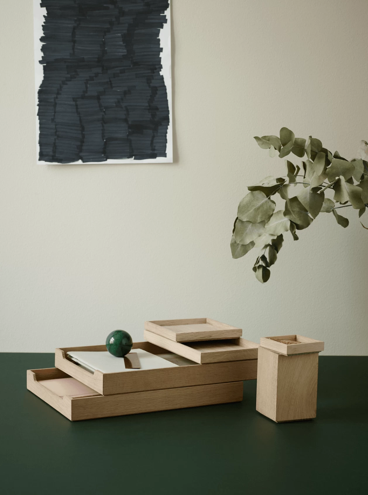 File your papers, notes and receipts with a wooden letter tray in natural oak. Combine it with the other designs in the Nomad series to add more functions – they are perfect for organising your office.