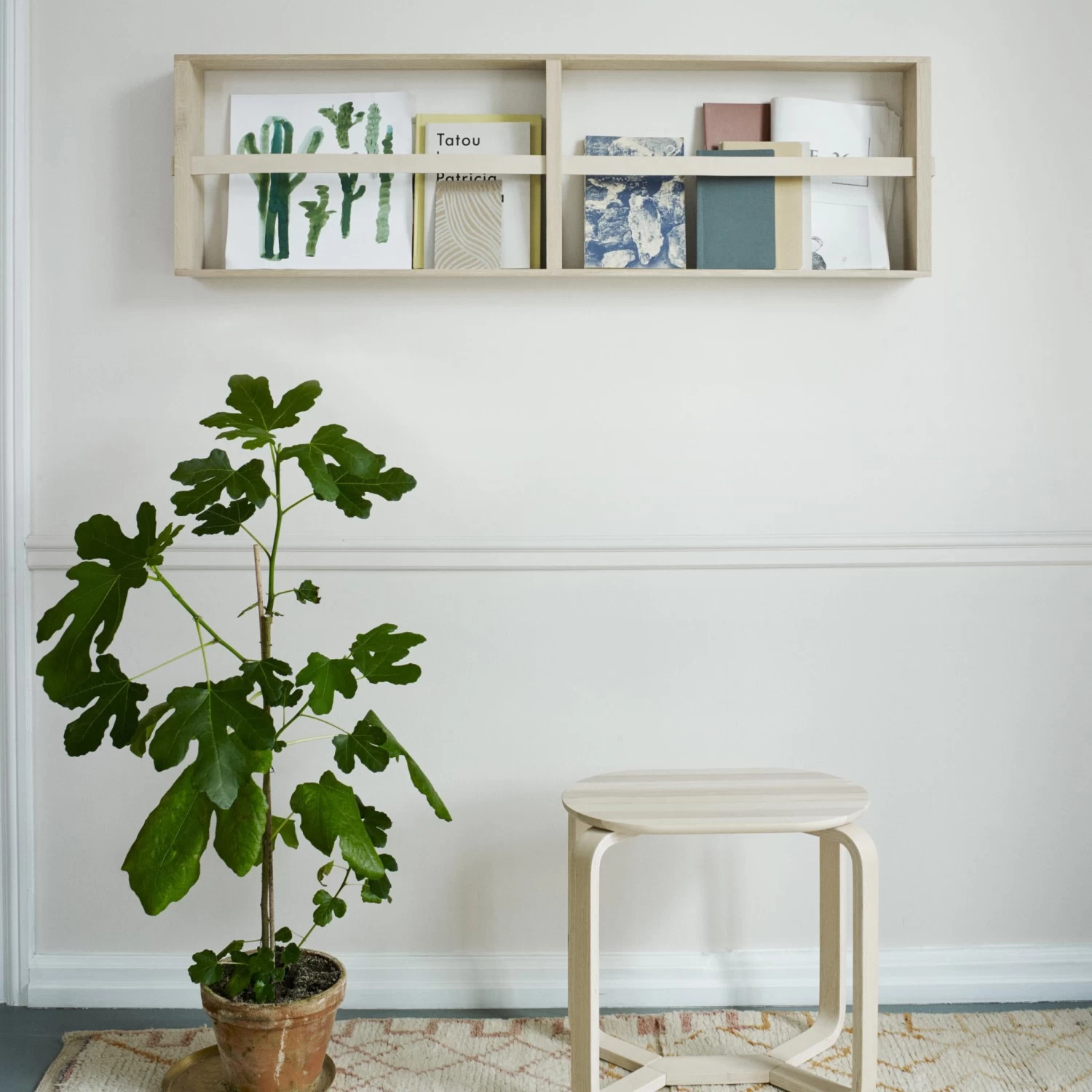 The Norr magazine holder combines functionality and aesthetics, as you can revitalise magazines, small decorations and books by arranging and displaying them on the wall. The long version is divided in two rooms – opening up for exciting combinations of themes. A beautiful leather ribbon matching the untreated oak holds the displayed items in place horizontally.