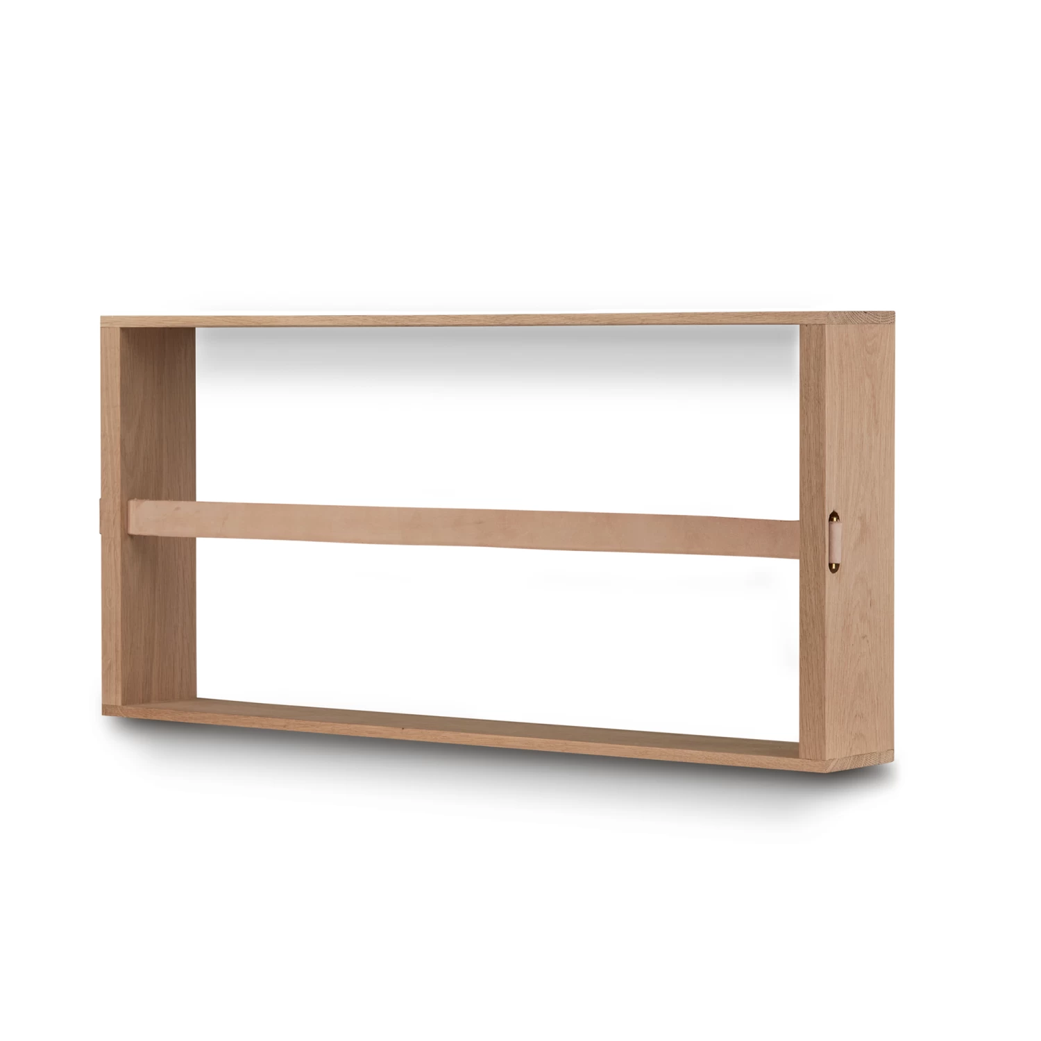 The compact Norr magazine holder 75 combines functionality and aesthetics, as you can revitalise magazines, small decorations and books by arranging and displaying them on the wall. A beautiful leather ribbon matching the oak holds the displayed items in place horizontally.