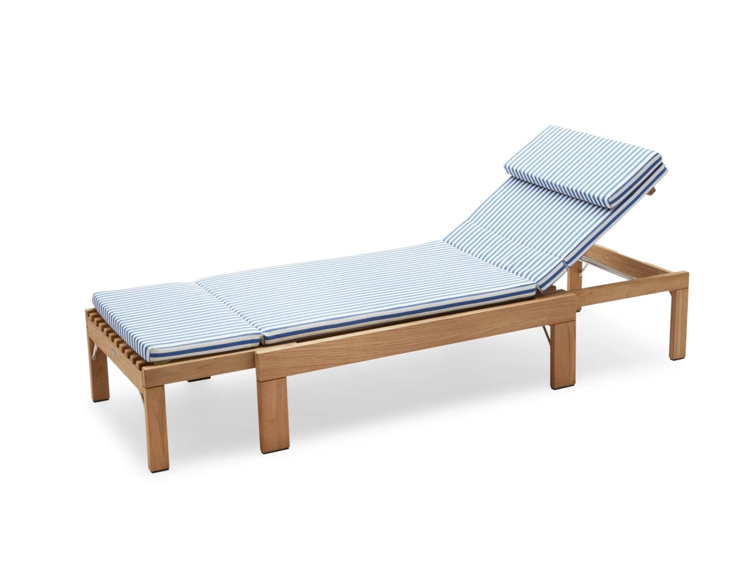 Riviera Cushion is custom-made for the Riviera Sunbed. The backside is designed with an anti-slide fabric that keeps the cushion in place. Able to withstand wind and weather, the upholstery fabrics are Oeko-Tex certified and extremely colour and lightfast as well as water and dirt-repellent and even mildew-resistant. The cushion dries exceptionally quickly, even after a heavy downpour, as the foam has an open-cell structure that allows both water and air to pass through. The foam provides a firm and comfortable texture that remains the same year after year.