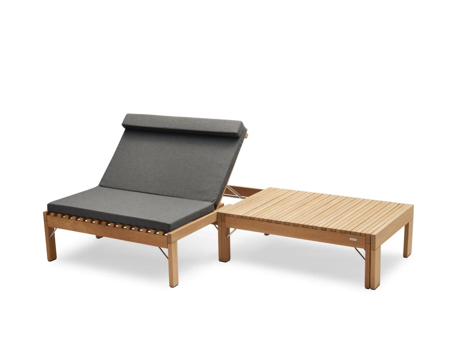 Riviera Lounge Cushion is custom-made for the Riviera Lounge Bed. The backside is designed with an anti-slide fabric that keeps the cushion in place. Able to withstand wind and weather, the upholstery fabrics are Oeko-Tex certified and extremely colour and lightfast as well as water and dirt-repellent and even mildew-resistant. The cushion dries exceptionally quickly, even after a heavy downpour, as the foam has an open-cell structure that allows both water and air to pass through. The foam provides a firm and comfortable texture that remains the same year after year.