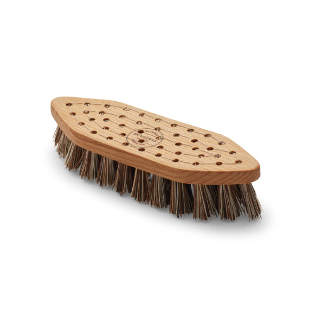 The kit includes a Garden Wood Cleaner by Auro and a natural brush made by ‘Blindes Arbejde’, a sheltered workshop for blind or partially sighted people, all elegantly packed in a practical and reusable cardboard box made by the socio-economic company ‘Kartonnagefabrikken’.