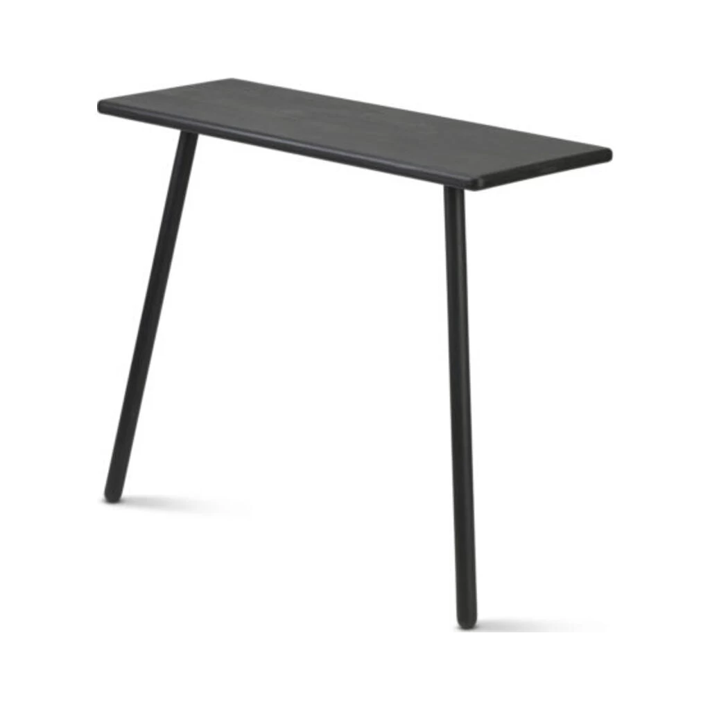 A two-legged console table leaning comfortably up against the wall – taking as little space as possible. Functional in all rooms. As a welcoming station in the hallways where keys and phones can be dropped off. As a make-up vanity in the bedroom or as a minimalist TV stand in the living room.[Details]