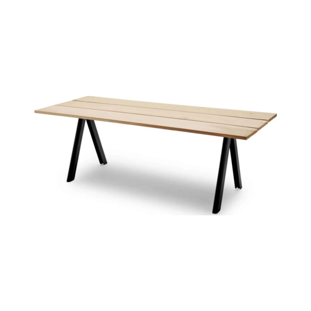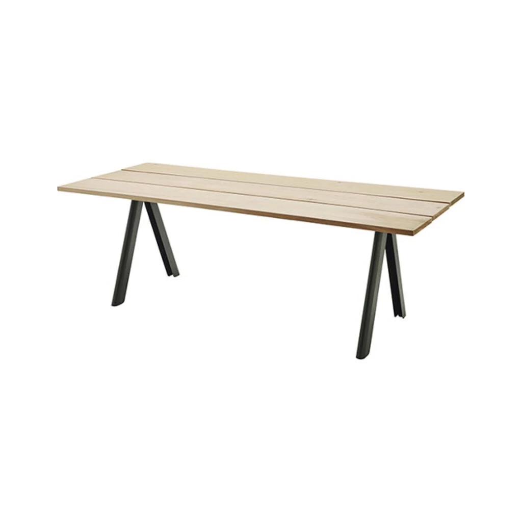 Overlap Table is a simple high-quality table that stands strong on its overlapping steel legs. The contrast between the rustic wooden planks and the powder-coated steel gives the table a modern edge and contemporary appeal that makes it an obvious choice, both indoors and outdoors.[Details]