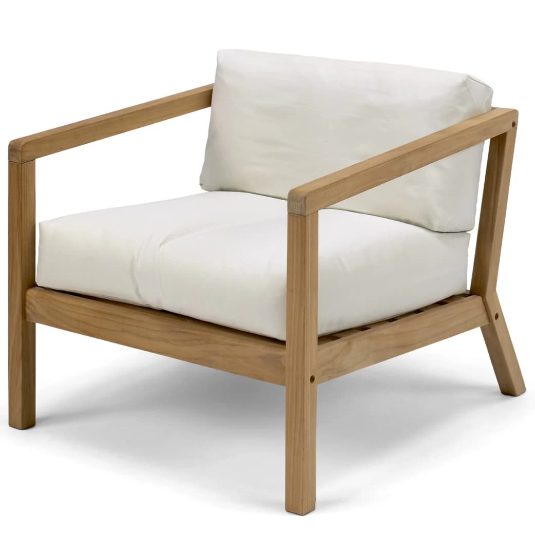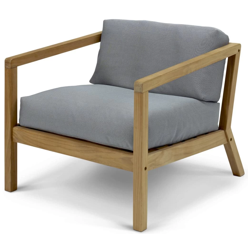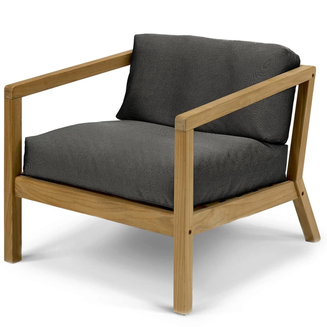 The Skagerak Virkelyst Chair is a modern outdoor sofa with the seating comfort of an indoor furniture. The simple wooden frame strikes a contrast with the thick, soft cushions. The upholstery of the Virkelyst Outdoor Chair are Oeko-Tex certified and are not only extremely color and lightfast but also water, dirt-repellent and mildew-resistant. The solid teak frame is simple and high quality that without treatment will turn a beautiful silvery grey color. Should you wish to retain the classic teak “honey” appearance, regular treating is required.