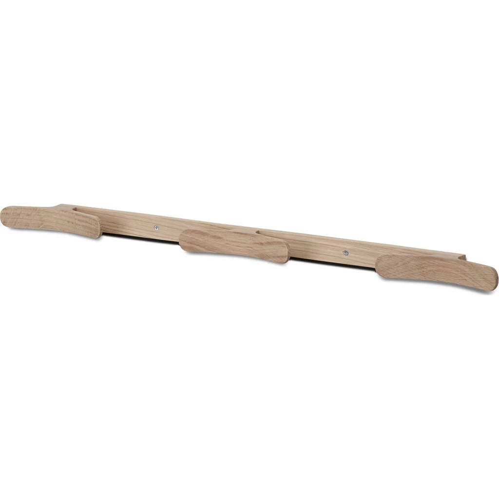 Walli Rack is developed with a dynamic cut and sculptural virtues, highlighting the features of the untreated oak. The rack has two arches formed as hangers, suited for carrying everything from long coats and hats to scarfs, bags and umbrellas. Designed by Maximilian Schmahl.