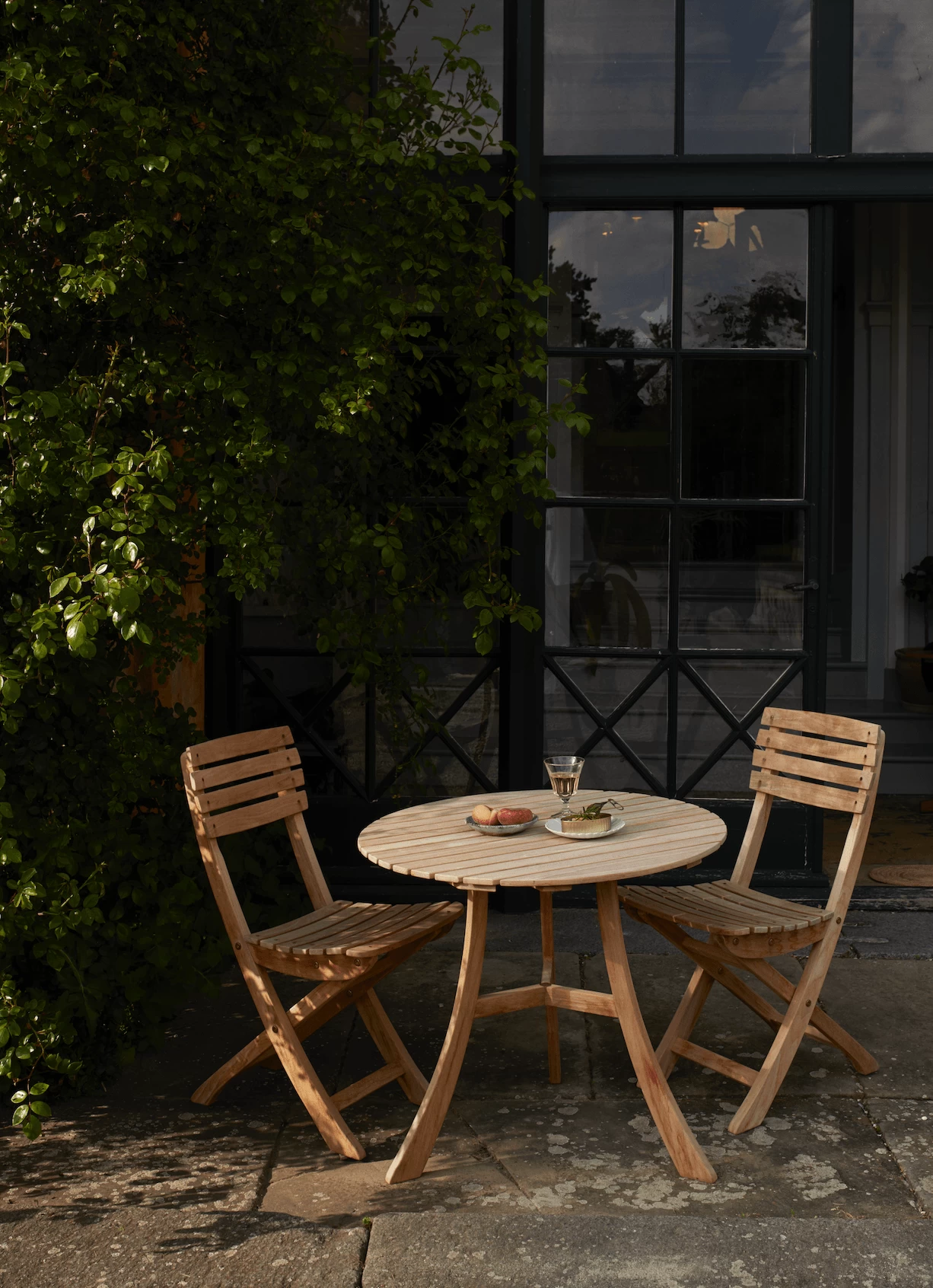 Vendia is a space-saving and elegant roundtable, ideal for confined spaces such as a small balcony, patio or kitchen. The curved legs and slatted table-top gives the table a light and easy look matching the Vendia chair or Selandia collection.