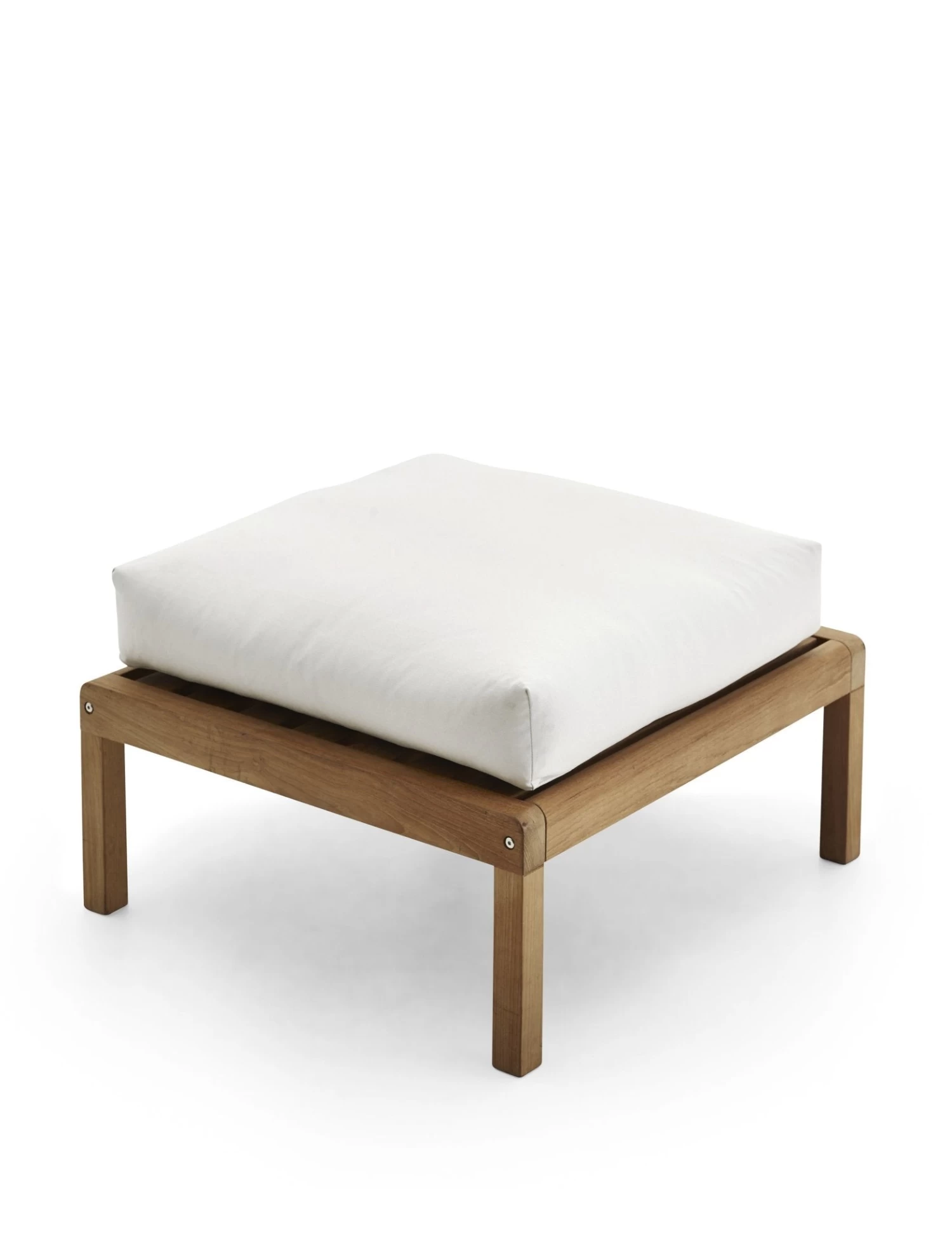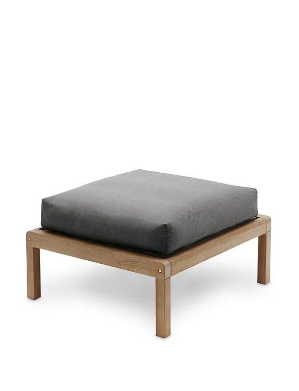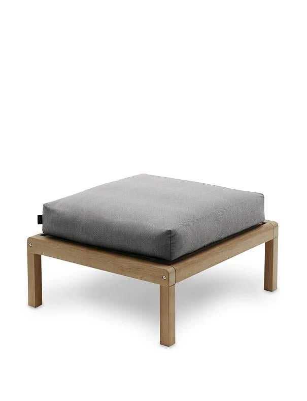 Virkelyst is a series of modern outdoor furniture with the seating comfort of indoor furniture. The simple wooden frame strikes a contrast with the thick, soft cushions. Able to withstand wind and weather, the upholstery fabrics are extremely colour and lightfast as well as water and dirt-repellent and even mildew-resistant. The cushion is filled with airy fossflakes – an allergy-friendly material that maintains its volume and shape over time. If the cushion is exposed to heavy rain, we recommend placing the cushions upright for quicker drainage.